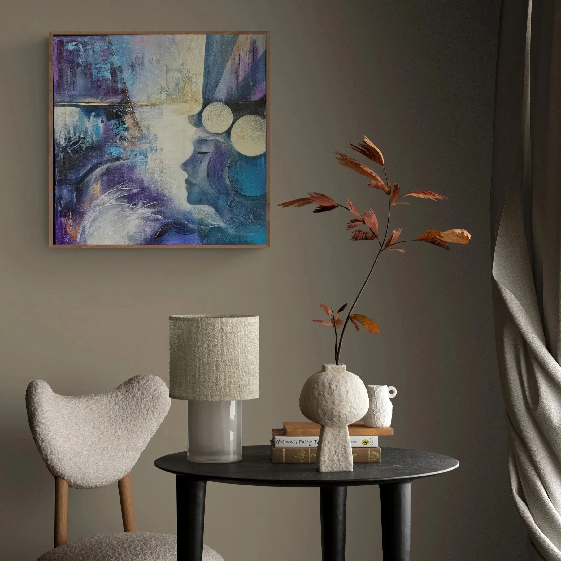 Elevate your space with WIDE AWAKE, a mesmerizing piece that brings depth and emotion into any room, capturing a serene yet powerful presence.